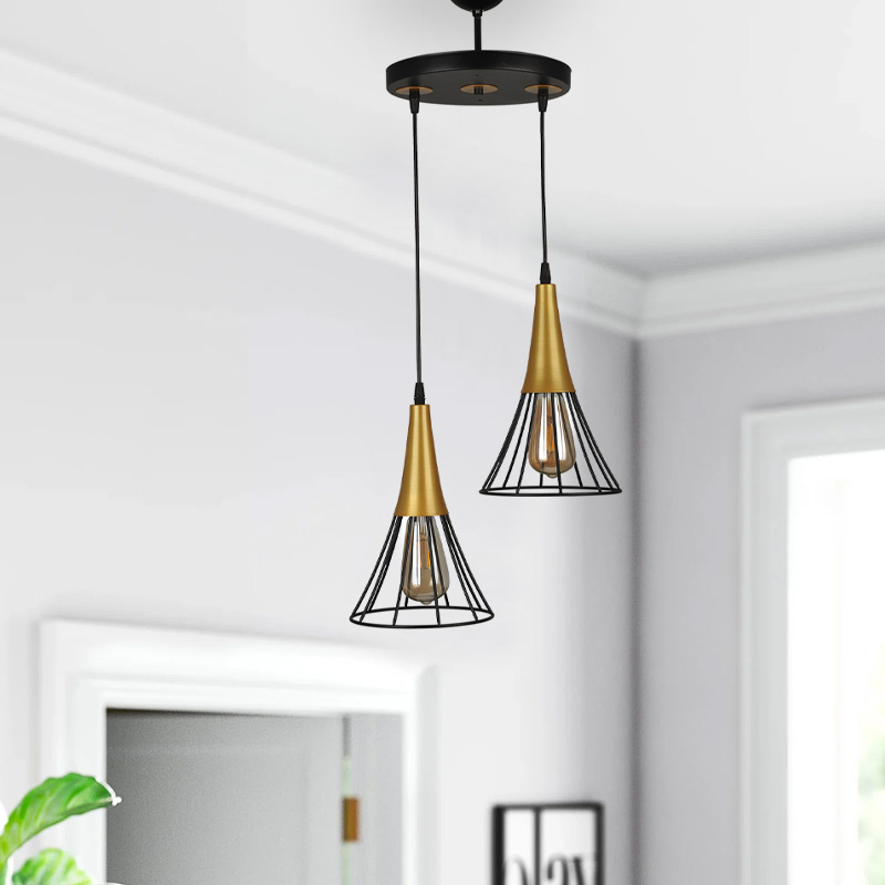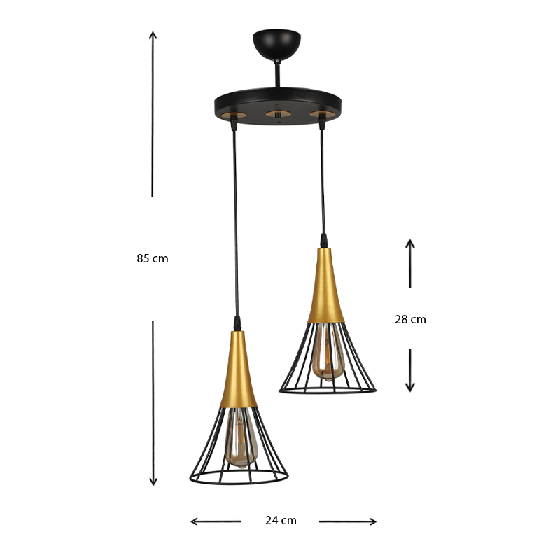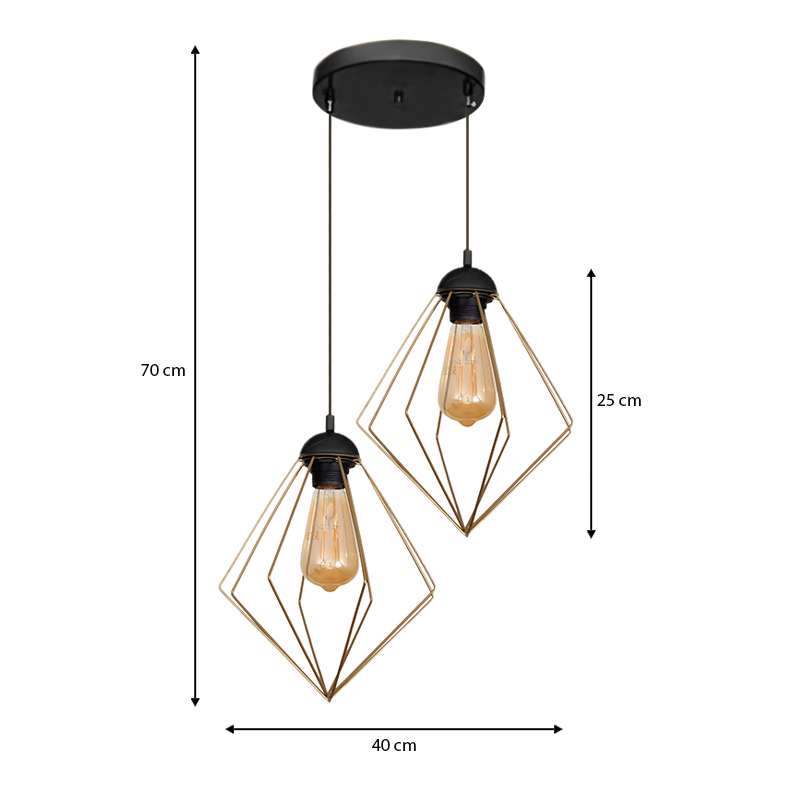 Φωτιστικό οροφής Franko Megapap E27 μεταλλικό δίφωτο χρώμα μαύρο – χρυσό 68x36x132εκ.