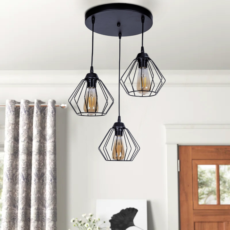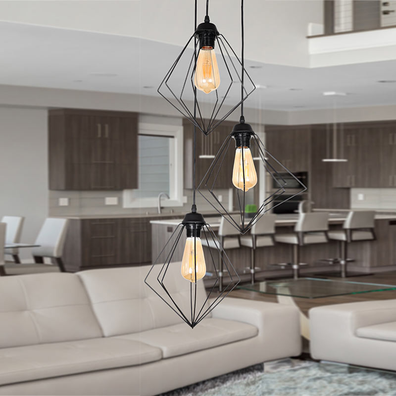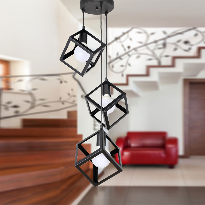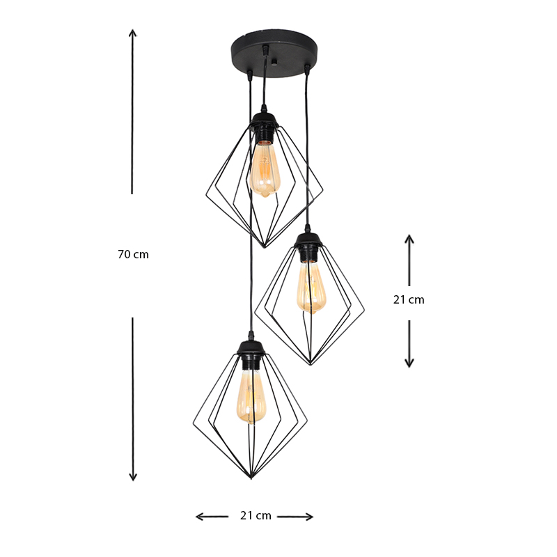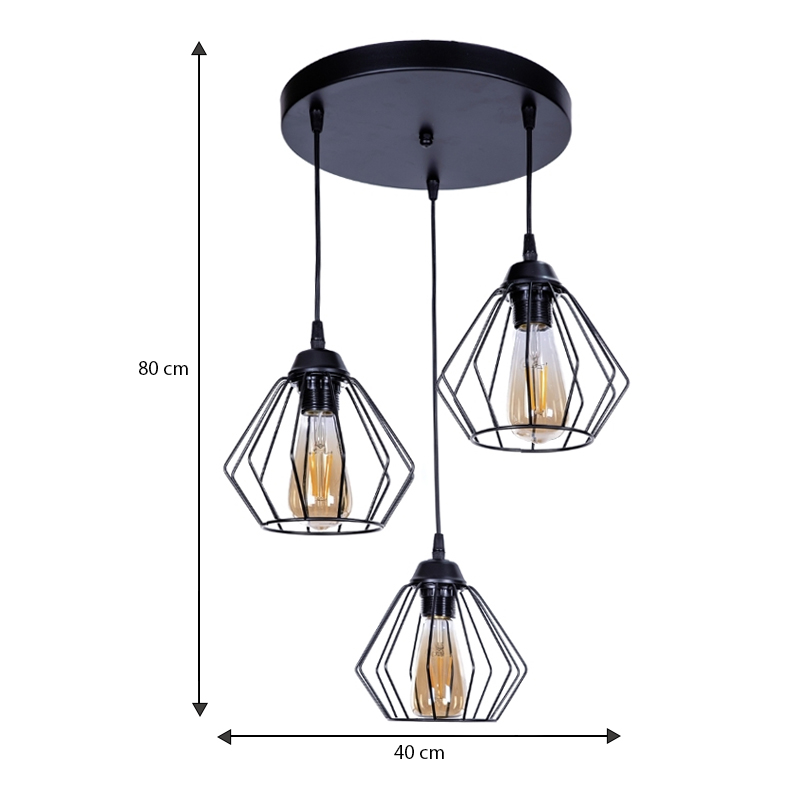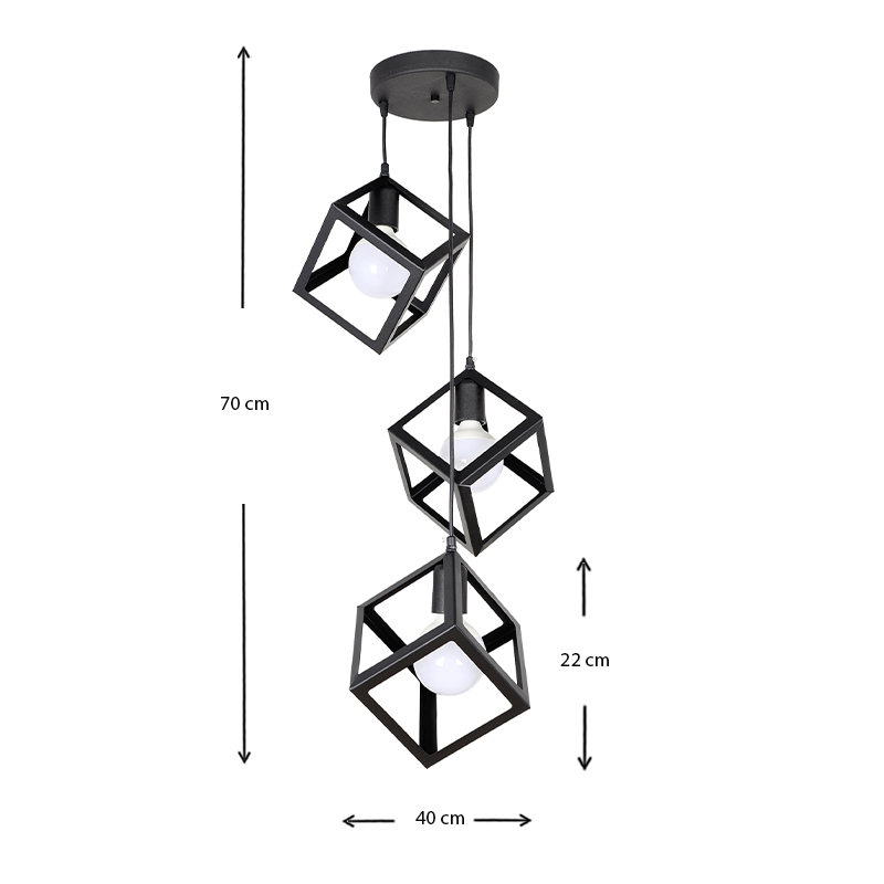 Φωτιστικό οροφής Chavi Megapap E27 μεταλλικό τρίφωτο χρωμα μαύρο 40x40x90εκ.