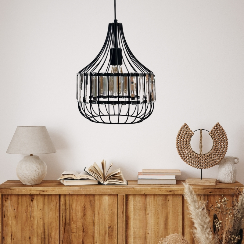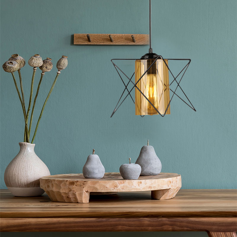 Φωτιστικό οροφής Zufash Megapap E14 μεταλλικό μονόφωτο χρώμα μαύρο 25x25x60εκ.