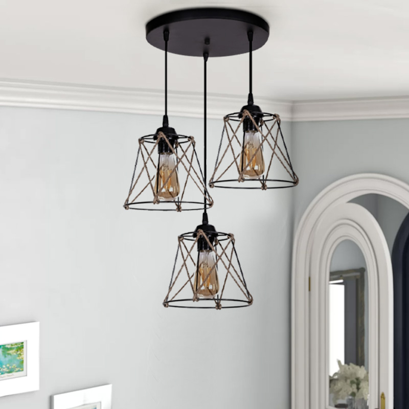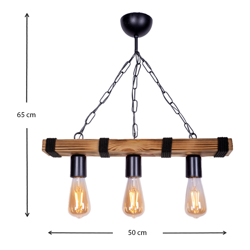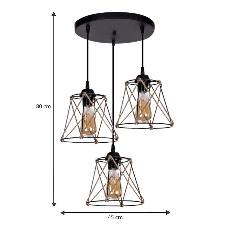 Φωτιστικό οροφής Lino Megapap E27 μεταλλικό – σχοινί τρίφωτο χρώμα μαύρο 40x40x80εκ.