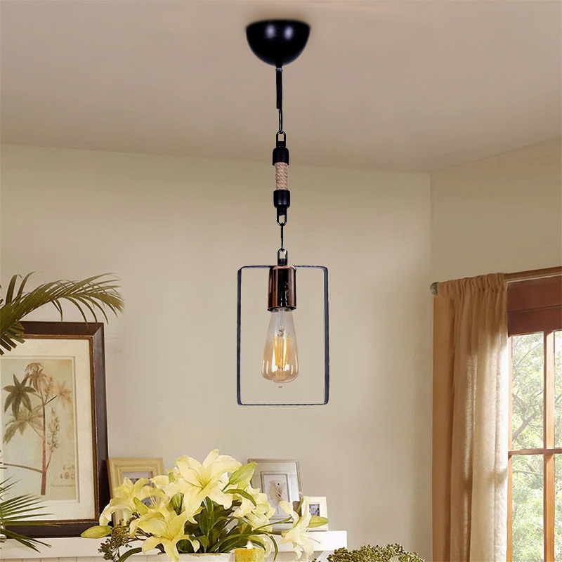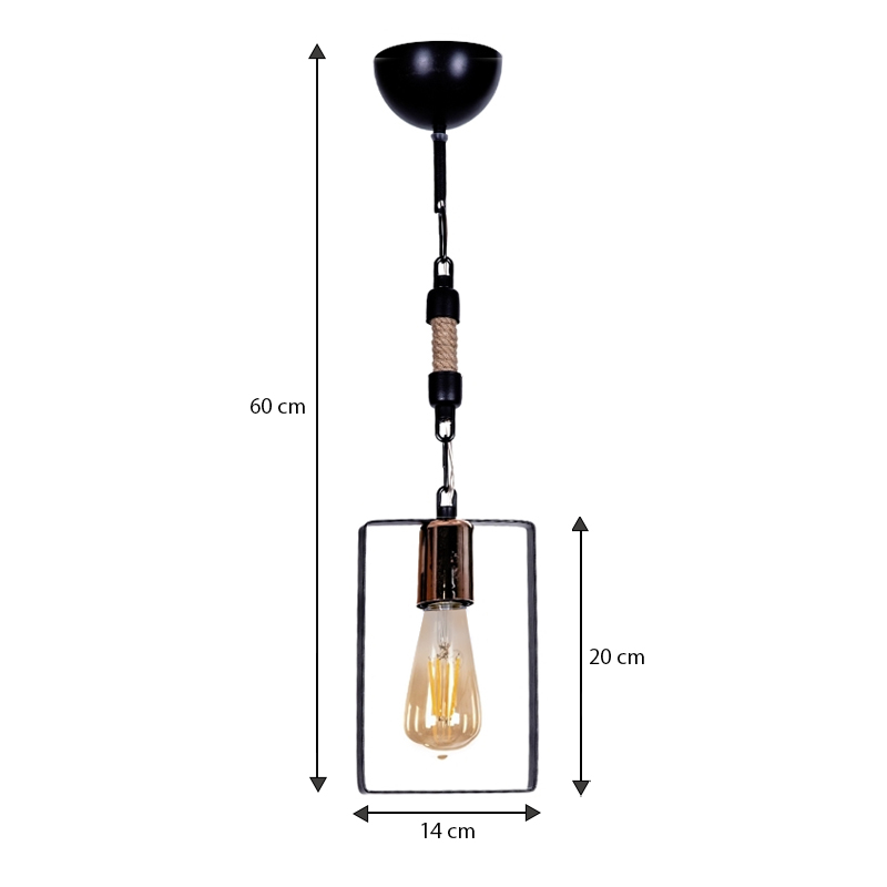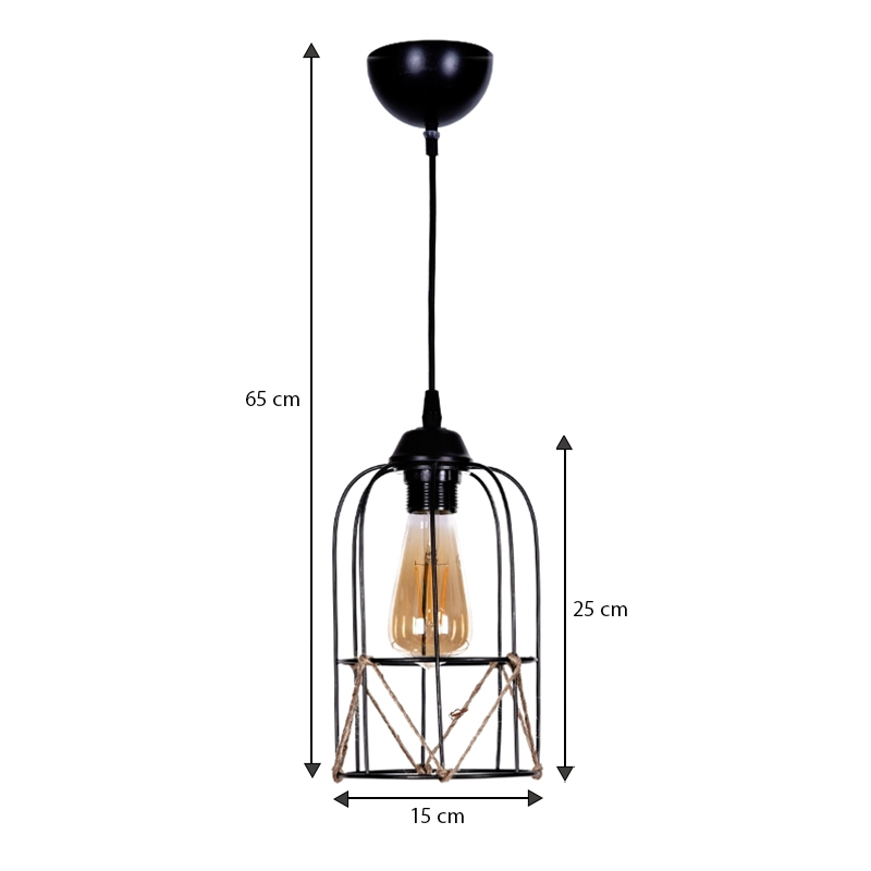 Φωτιστικό οροφής Argon Megapap E27 μεταλλικό – σχοινί μονόφωτο χρώμα μαύρο Ø15×65εκ.