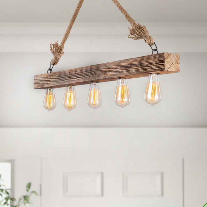 Φωτιστικό οροφής Giza Megapap E27 ξύλο – σχοινί εξάφωτο χρώμα φυσικό 80x8x90εκ.