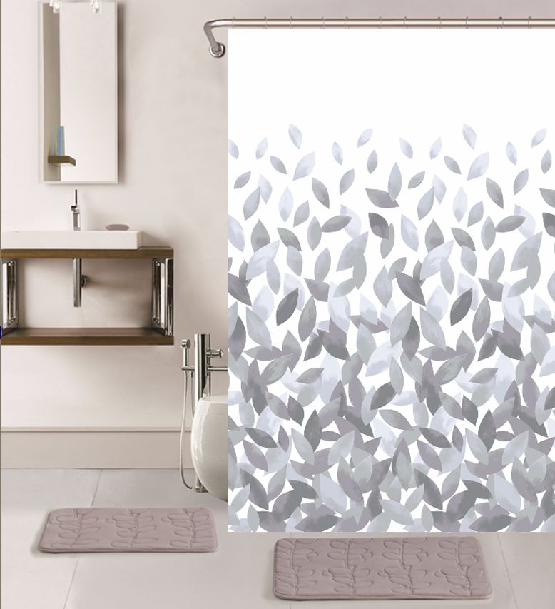 ΚΟΥΡΤΙΝΑ ΜΠΑΝΙΟΥ ΜΕ ΚΡΙΚΟΥΣ LEAFS ΓΚΡΙ 180×200