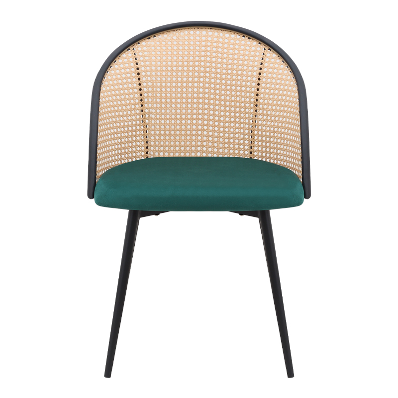 - Χρώμα: Κυπαρισσί βελούδινο κάθισμα – πλάτη pe rattan σε φυσικό χρώμα – μαύρα μεταλλικά πόδια.
