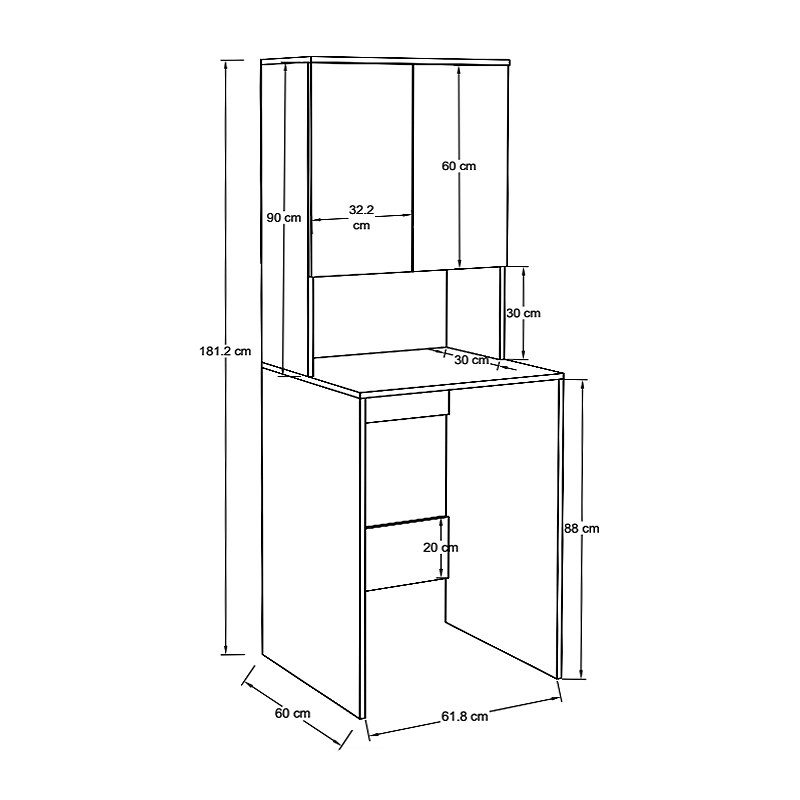- Διαστάσεις: Μήκος 65 x Βάθος 60 x Ύψος 182 εκ.