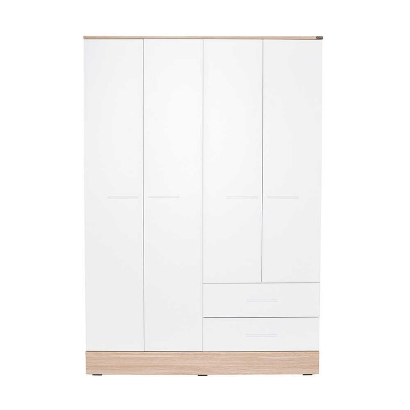 Ντουλάπα ρούχων Base Megapap τετράφυλλη με συρτάρια χρώμα λευκό – sonoma 137x52x198εκ.