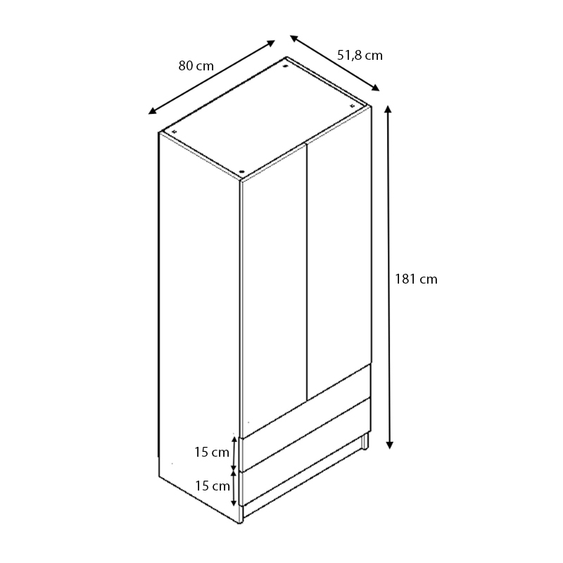 - Διαστάσεις ντουλάπας: Μήκος 80 x Βάθος 51,8 x Ύψος 181 εκ.