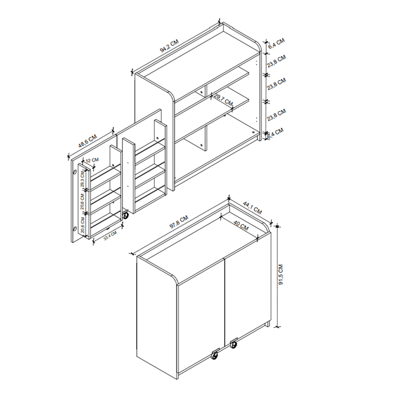 - Διαστάσεις: Μήκος 97,8 x Βάθος 44,1 x Ύψος 91,5 εκ.