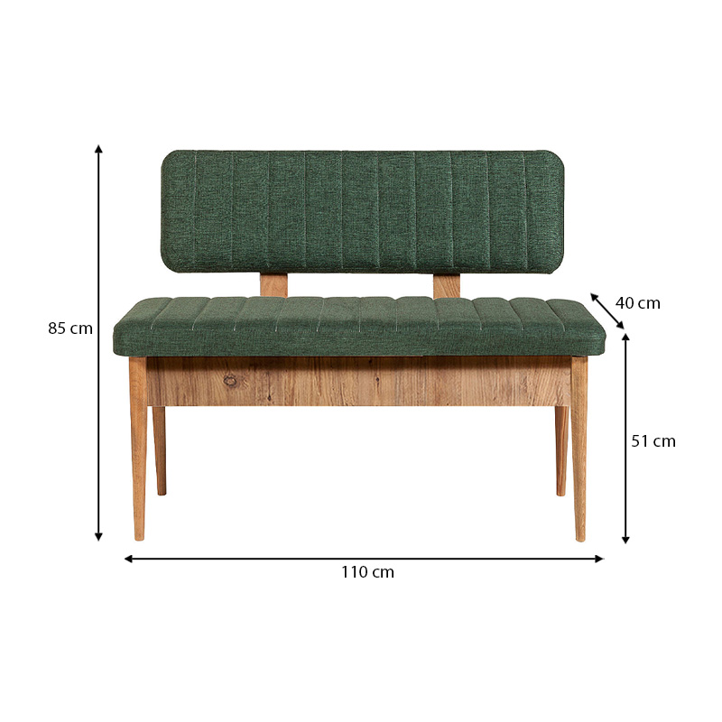 Καναπές διθέσιος – Παγκάκι Alden Megapap από μελαμίνη – ύφασμα χρώμα πράσινο 110x40x85εκ.