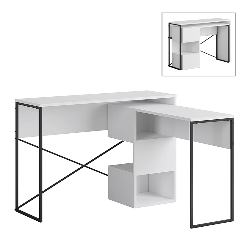Γραφείο εργασίας πολυμορφικό Badau Megapap χρώμα λευκό 110×37,2×77εκ.